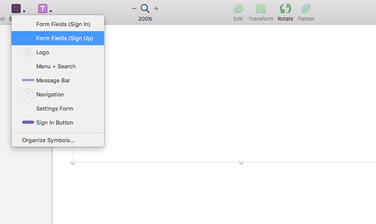 To save time, and to avoid having to design all of those elements from scratch, we'll insert the 'Form Fields (Sign Up)' Symbol that we created in Part 1 of this tutorial.